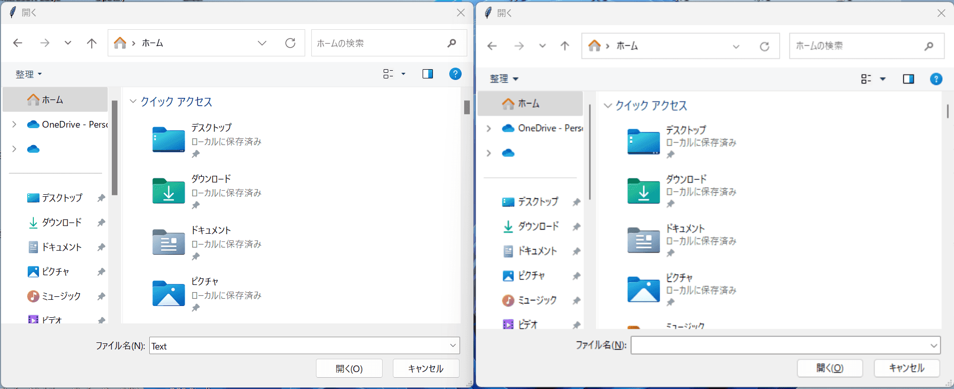 print(path)これを実行すると、ファイル選択画面が開き、そこでファイルを選び「開く」を押すとそのパスが標準出力にでてきます。